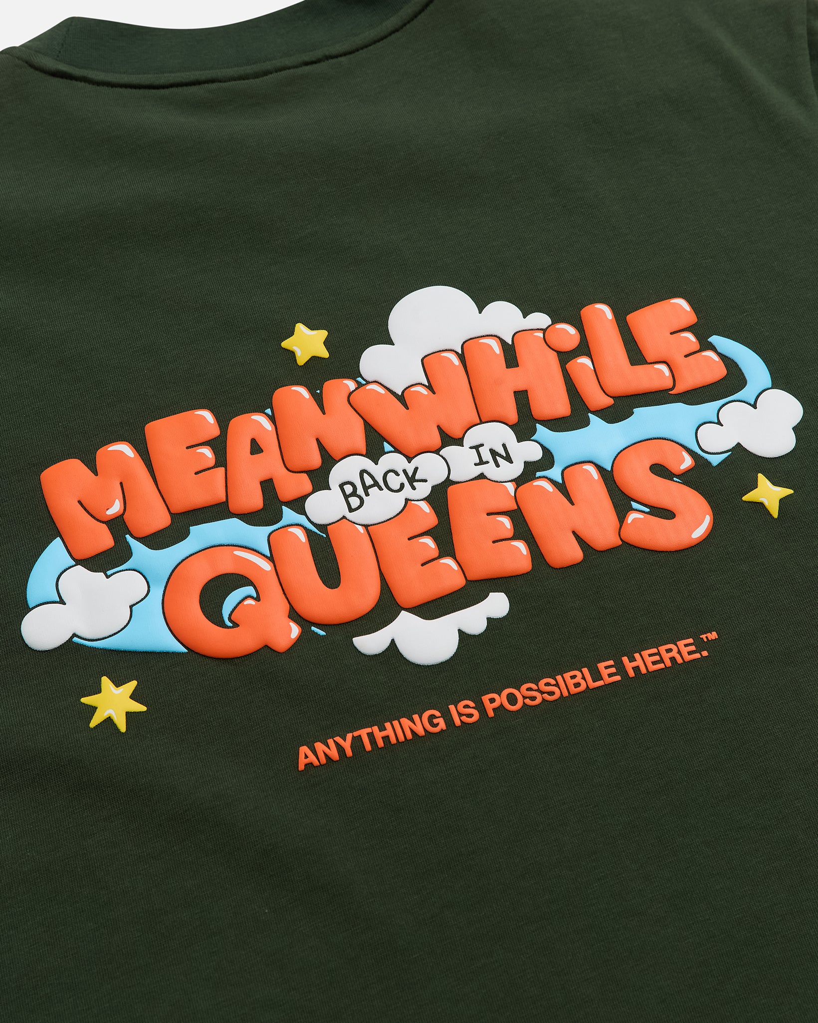 Inspired by late-night ideas, dreaming big, and the belief that anything is possible when you’re from Queens. Crafted from medium-weight 100% cotton jersey with a soft hand feel, this tee is designed for everyday comfort and wear. It features a screen print at the top left front and a bold puff print hit on the back. Finished with a classic, true-to-size fit in unisex/mens sizing— size up for a more oversized look.