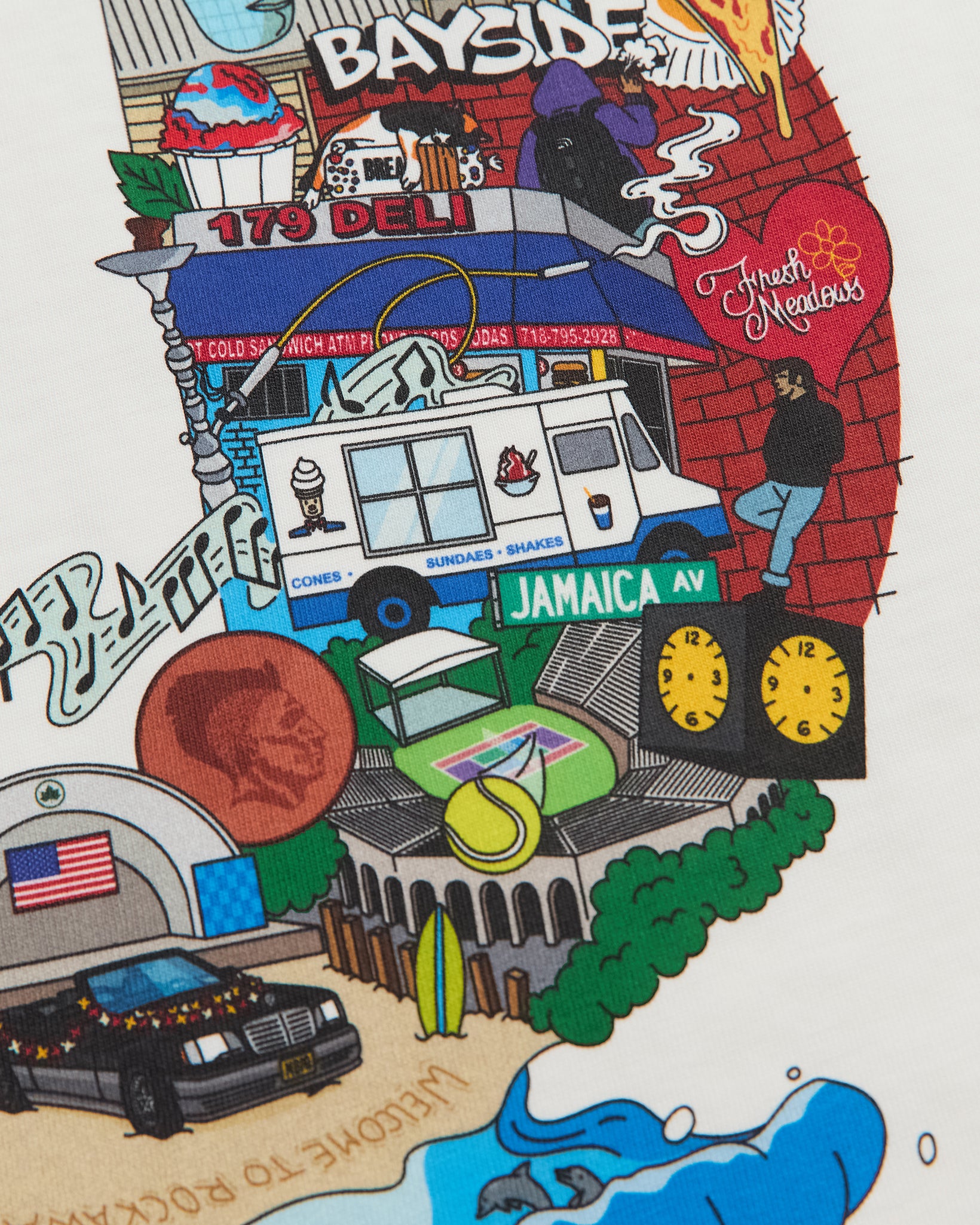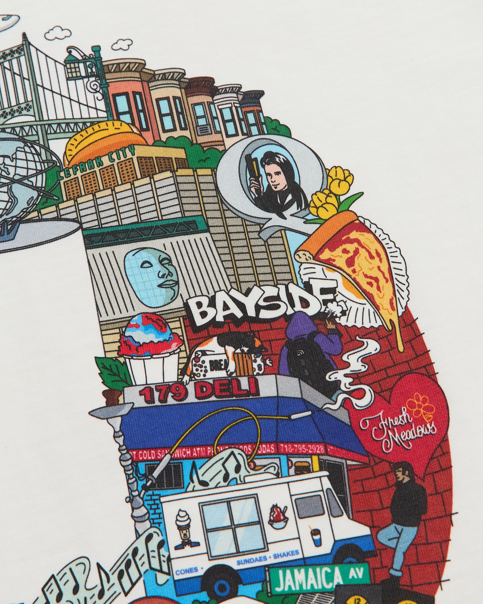 Inspired by iconic Queens landmarks and neighborhood legends, the Collage Tee is an art piece rooted in community and history. Crafted from medium-weight 100% cotton jersey with a soft hand feel, it offers a classic, true-to-size fit for everyday wear. The design features a front MBIQ script logo and an HD custom collage print on the back. Finished with unisex/mens sizing—size up for a more oversized look.