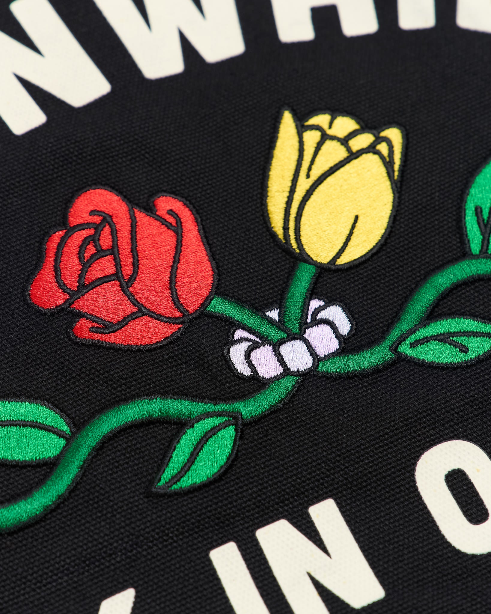 The Rose, Tulip and Wampum are an homage to the early origins of Queens. The motif is 3D embroidered on our heavyweight canvas tote with a magnetic clasp & pocket.