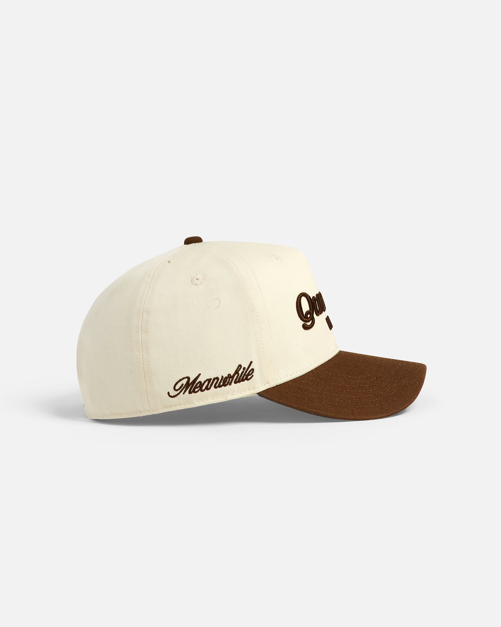 An ode to the official drink of NYC, the Coffee & Cream Snapback celebrates the city’s iconic beverage. This 5-panel structured hat features 3D embroidery on the front and flat “MEANWHILE” embroidery on the right side, combining classic craftsmanship with contemporary design. Finished with an adjustable snapback closure.